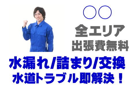 ○○で水廻りの修理を行なっております。トイレ、キッチン、風呂、洗面所の蛇口の水漏れ、排水詰まりなどのトラブル時にお近くに待機所から緊急出動いたします!